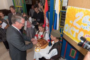 – Уважена потпредсенице Владе Републике Србије, госпођо Михајловић, Ваша Екселенцијо, господине Чепурин, господине Павлов, госпођо Чолић, драги гости, поштовани домаћини, драги учитељи, наставници, ученици, добар дан.